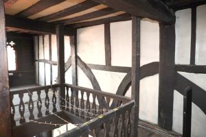 Oriel Cottage, Avon View, 91 Castle Street, Salisbury is part of a range of timber-framed buildings, and has a complicated plan, the front rebuilt in the 18th century. A tie-beam from the rear range known as Oriel Cottage, and a principal rafter to the set-back range dated to between 1456 and 1475. A first-floor floorboard was most likely felled after 1602. Link to dendro report.